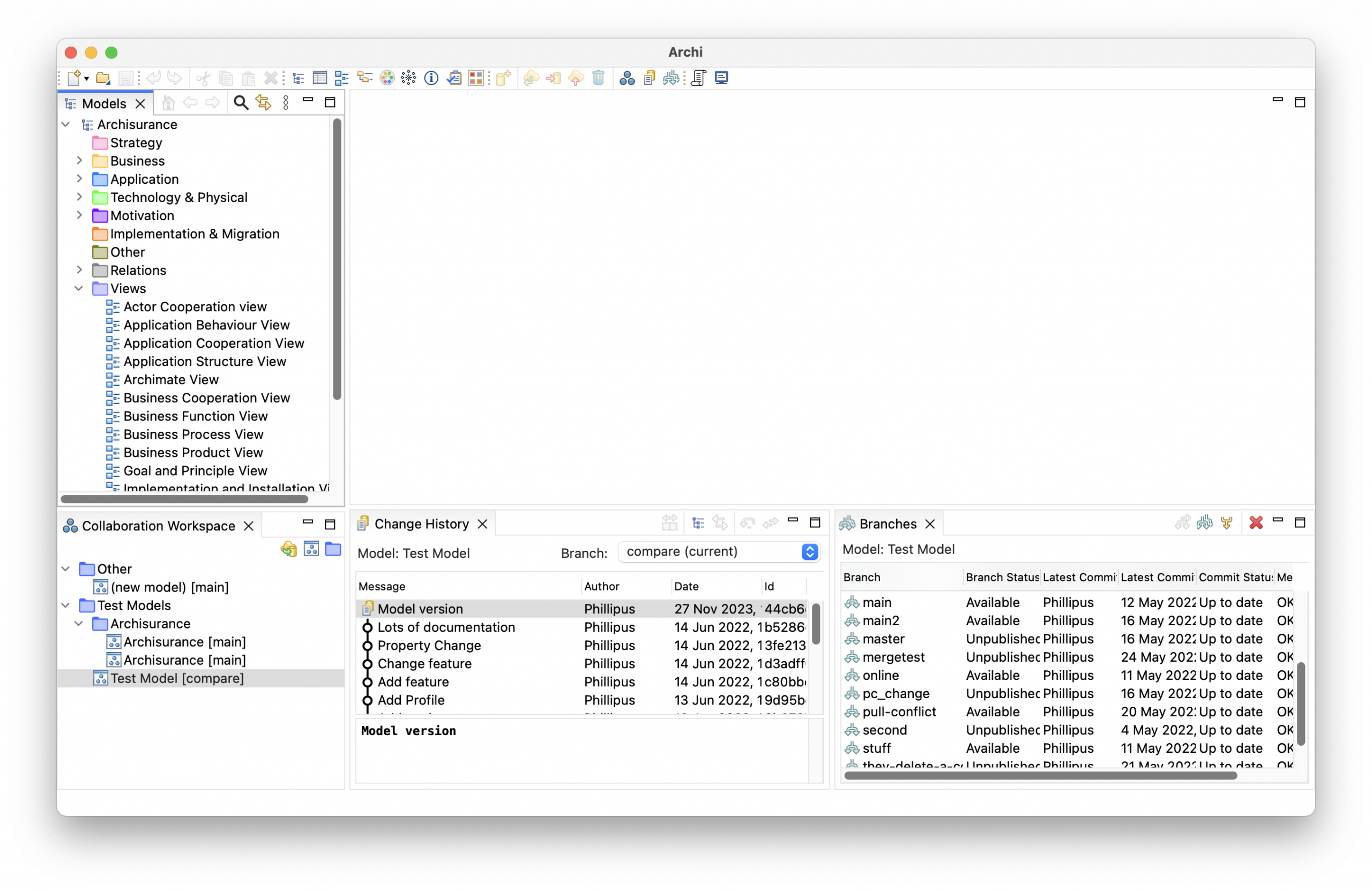 This is an extension to Archi that allows collaborative work on Archi through sharing and versioning of models in a Repository.